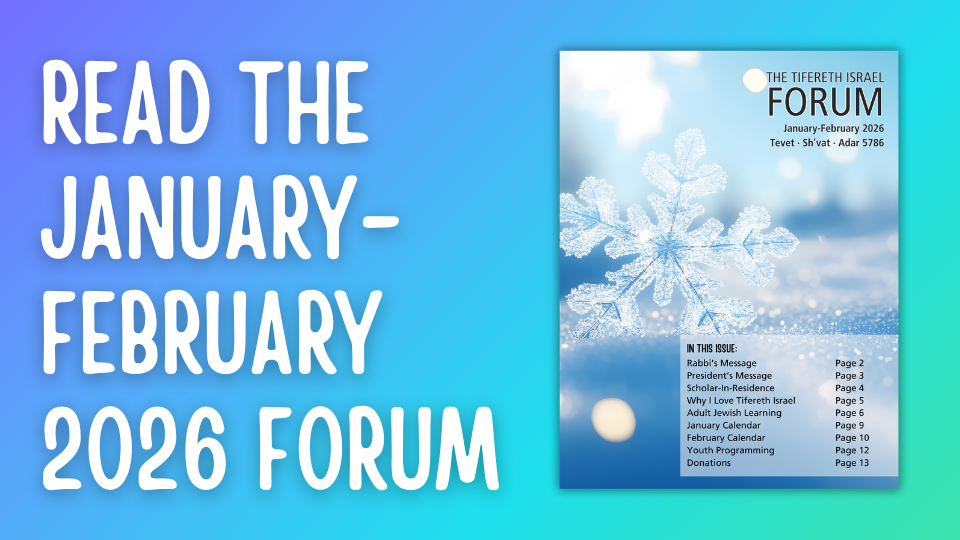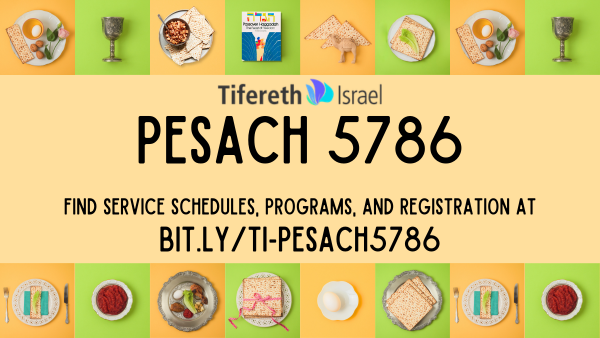 Enter your email address below to be put on our email list and receive periodic email updates from Tifereth Israel.